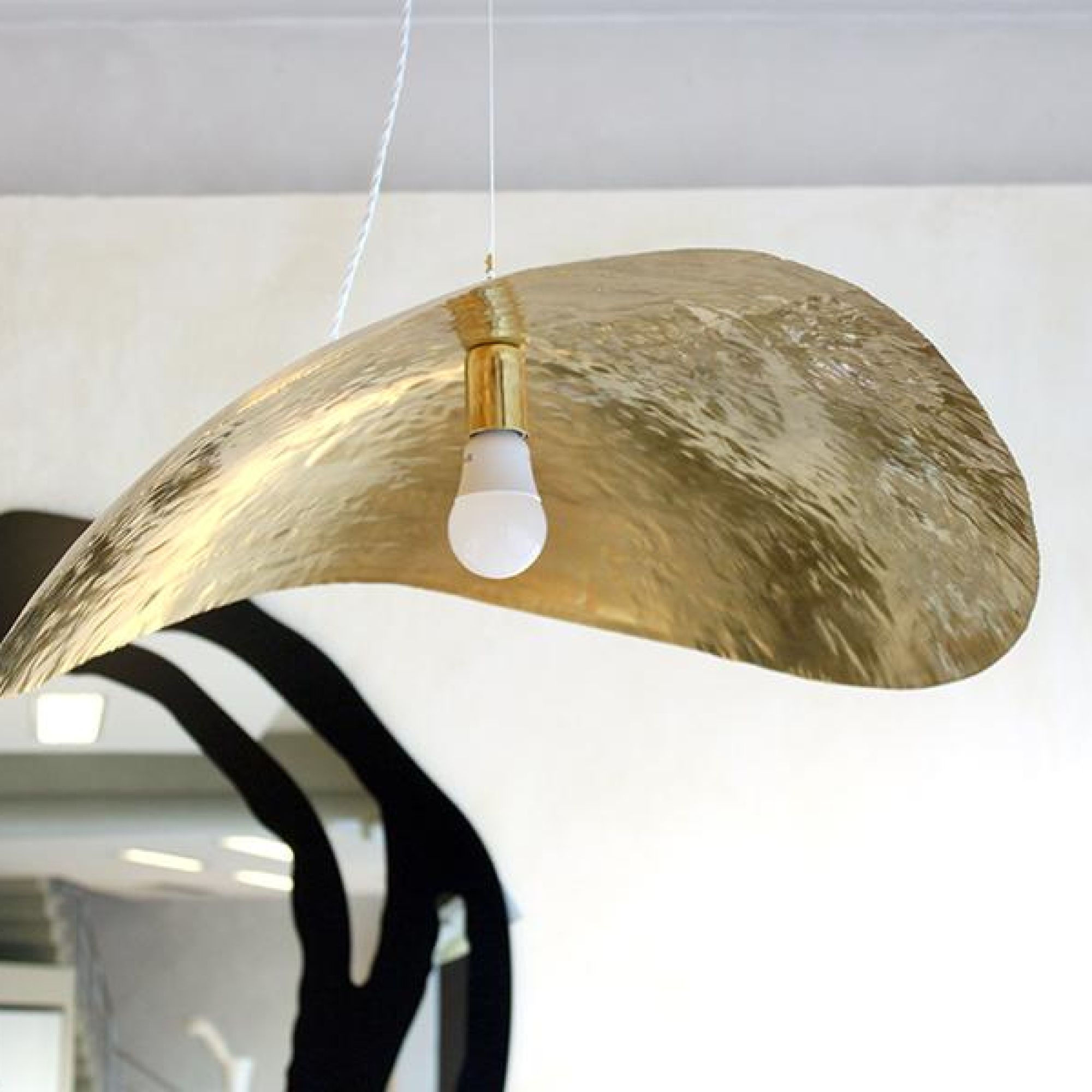 Lampada a sospensione Gervasoni "Brass 95" in ottone opaco martellato.