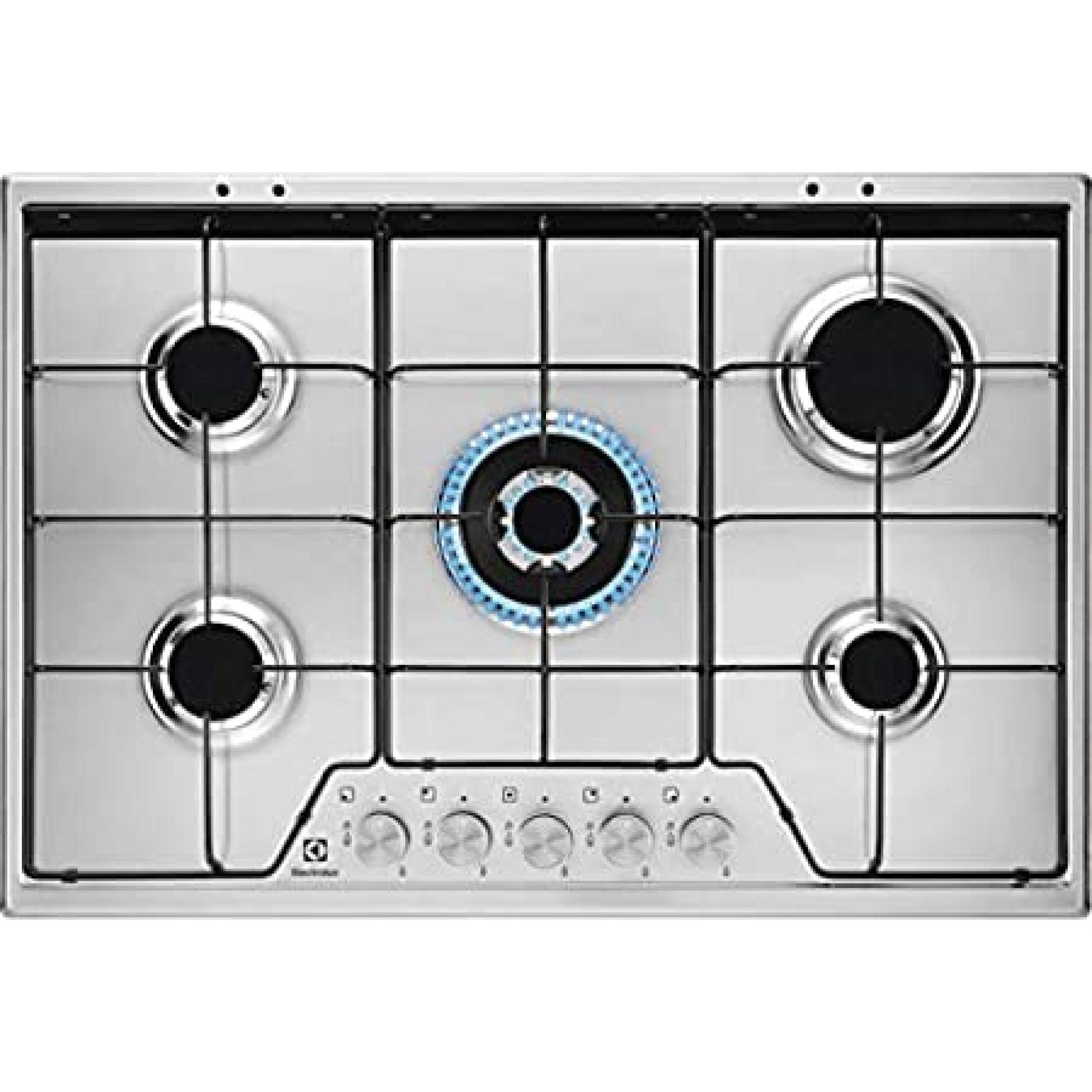 5 fuochi cm.75Bruciatori Fiamma PuraGriglie speciali in estetica neraAccensione integrata nella manopolaSicurezza SicurgasEstetica inox/manopole inox