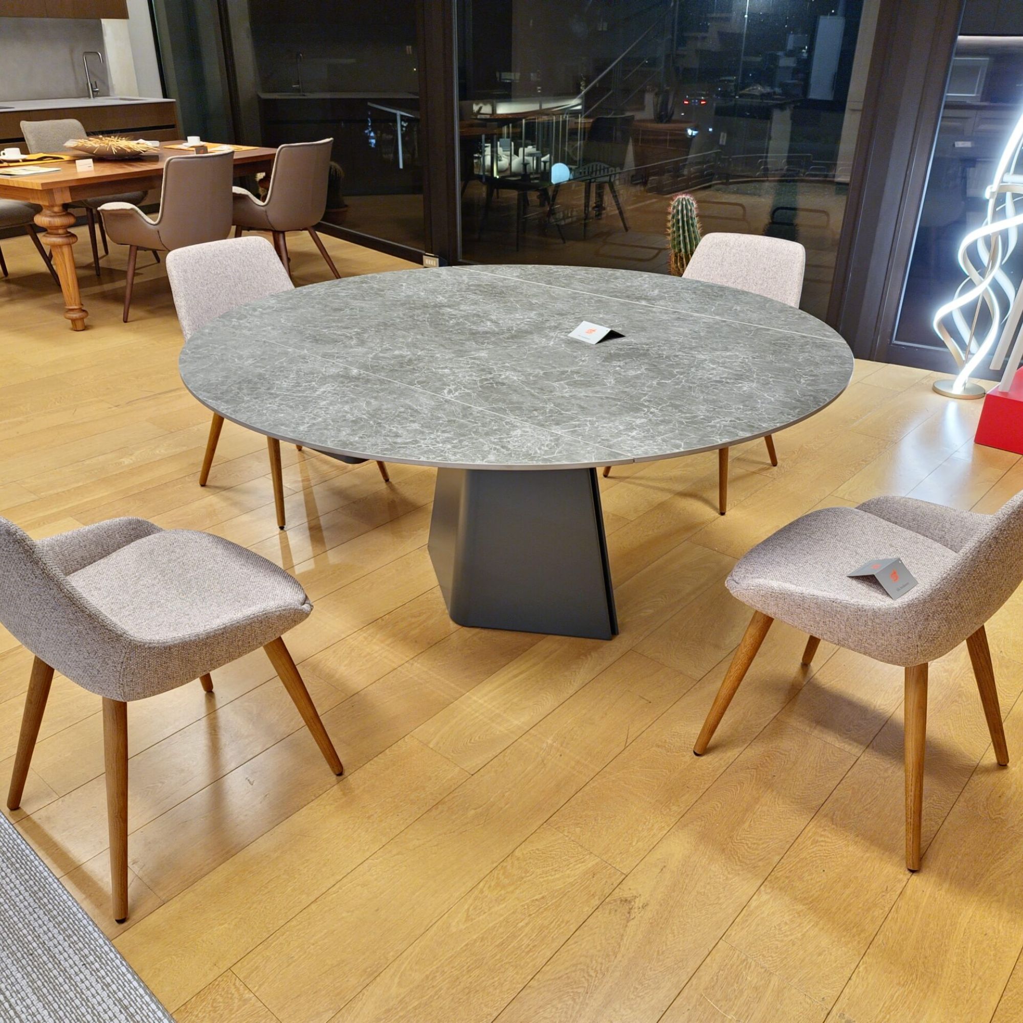 Tavolo allungabile Tay 160 con piano in gres Fiordi Bosco(12) con base grafite in metallo; con sistema girevole. Dimensioni tavolo chiuso L.cm.160×90 e aperto L.cm.160×160